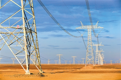 ±1100千伏准东—皖南特高压直流输电工程是我国自主研发的世界电压等级最高、输电容量最大、输电距离最远的特高压工程,刷新了世界电网技术纪录。图为工程新疆段。资料照片