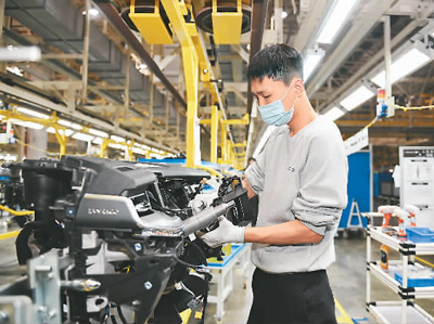 今年1至10月,浙江省宁波市811家汽车制造业规上工业总产值2646.8亿元,同比增长14.2%。图为11月19日,工人在领克汽车宁波梅山工厂的总装车间作业。