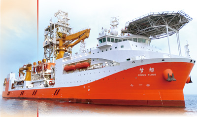 靠泊在广州海洋地质调查局科考码头的大洋钻探船“梦想”号