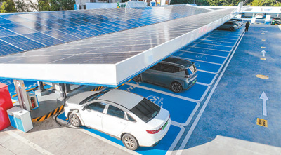 江西省赣州市建成市政中心“光储超充、车网互动”一体化示范站、沙河“燃气+光储超充”等多座公共超充站。图为近日,新能源汽车在赣州市章贡区章江街道赣州迎宾加能站内充电。
