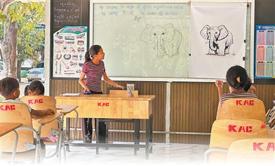 柬中免员工通过多媒体放映展示长城、熊猫等文化元素,让中国形象在孩子们心中日益生动鲜活起来。在福利院长大的空媞瑞现今是大四学生,她曾凭借一幅《苏州永庆寺》在绘画比赛中获奖。“从小和哥哥姐姐们一起画长城,我希望将来能去中国看看。”她说。
