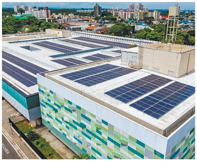 午后的阳光洒在巴西圣保罗州保利尼亚医院的屋顶上,一排排深蓝色的光伏板在微风中泛着柔和的光。电表上的数字缓缓转动,读取着从这里输送至病房、手术室的清洁电力。