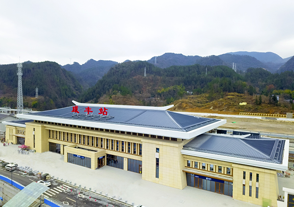 不只是龙山北站,由该集团建设的桑植站、来凤站、咸丰站等站房,都把现代铁路站房标准与沿线少数民族风俗完美结合起来,一站一景,站城融合,如同一颗颗耀眼的“明珠”镶嵌在黔张常铁路线上和当地文化中,成为崇山峻岭的一处处靓丽风景。