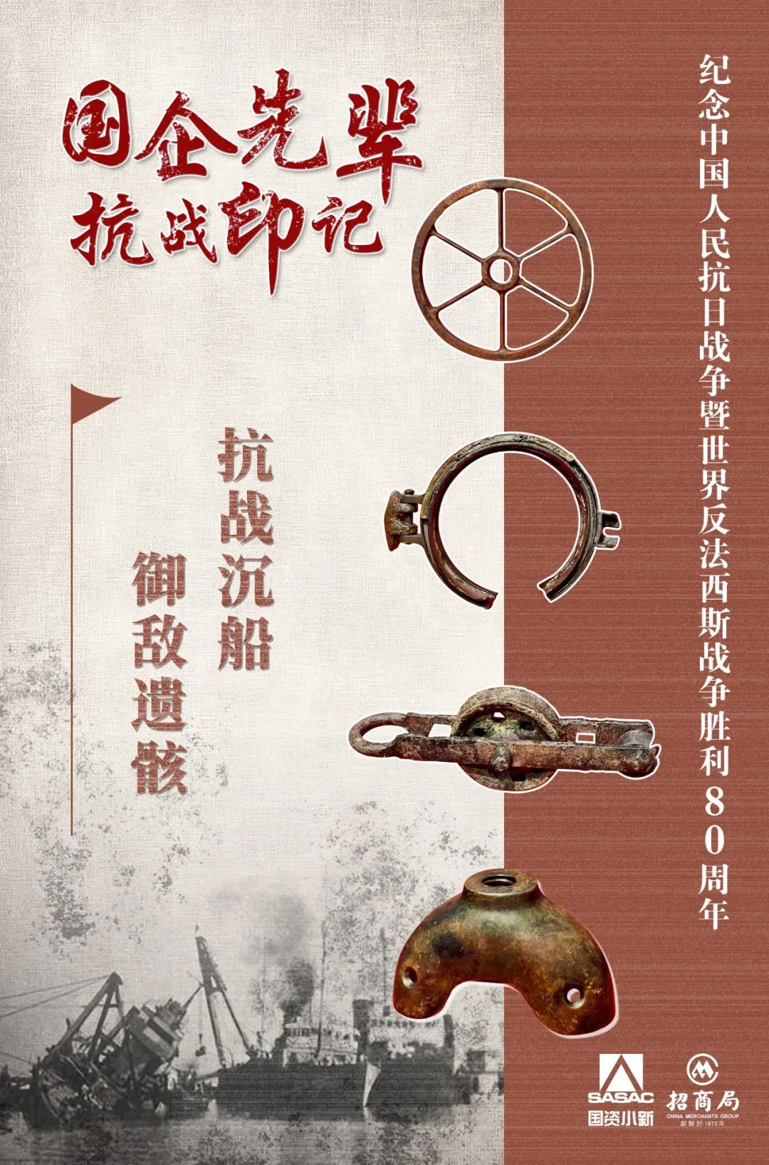 走进位于深圳市蛇口微波山的招商局历史博物馆,“同仇敌忾 抗日救国”板块的展柜里,几个锈迹斑斑的船体部件残骸静静地陈列着。