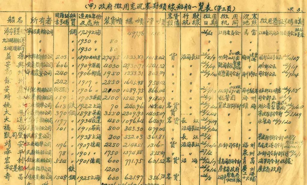 1937年,抗日战争爆发之初,招商局共有大小船只53艘,计86380总吨。几次大规模的沉船塞港行动后,招商局共沉船24艘,其中江海大轮与大型趸船18艘,计3.45万总吨。