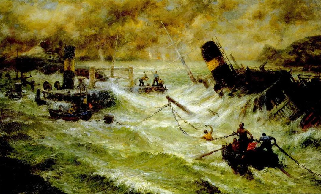 根据沉船抗日场景创作的油画