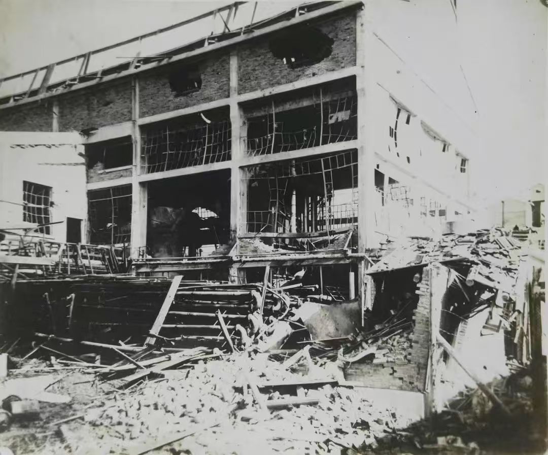 刚建成的永利铔厂硫酸装置厂房和遭日军轰炸后的硫酸装置厂房