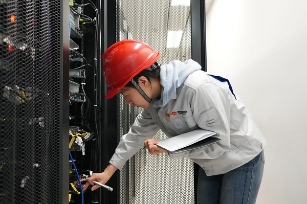 渠叶君在集控中心机房检查设备。