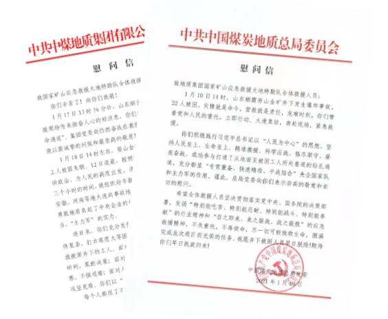 总局党委、地质集团党委向奋战在救援一线的救援队员发去慰问信,向他们表示祝贺,并致以亲切的问候和崇高的敬意。救援队员备受鼓舞,表示一定不辜负上级领导的重望,保证圆满完成救援任务。