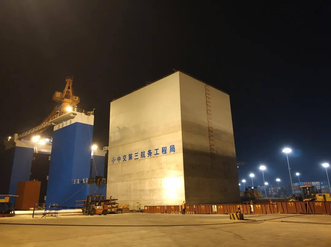 “防波堤最早计划的是抛石堤身工艺,但开工前不久突然变更成沉箱结构,难度一下就增大了。”项目常务副经理郭志鹏介绍。2020年12月初,在海南洋浦湾曲折的海岸线上,中交集团所属中交三航局承建的海南炼化100万吨乙烯及炼油改扩建码头防波堤项目上演着千吨沉箱入海归位的精彩一幕。