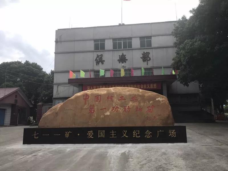在七一一矿•爱国主义纪念广场前的纪念石上,是原二机部部长刘杰题写的几个大字“中国核工业第一功勋铀矿”。
