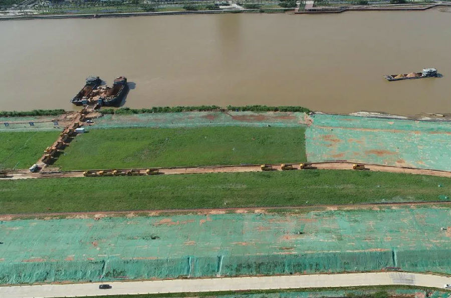 放眼望去,如今的外江水系地块一片郁郁青青的景象。这些生命力极强的绿色植物,在微风吹拂下摇曳,宛若天鹅翩翩起舞。