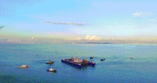 沉管对接完成后,仍然处在一种不稳定的状态,水中的压力随时可能对各个部件造成巨大的破坏,世界最大供料锁固回填船“一航津供1”储存能力3000立方米,供料能力每小时800立方米,通过精准抛填石块,在沉管堆起梯形山,把沉管埋起来,让沉管有力应对海水冲刷、侧移、水浮的抵抗力,至此,海底沉管隧道的浮运安装,才算是宣告完成。