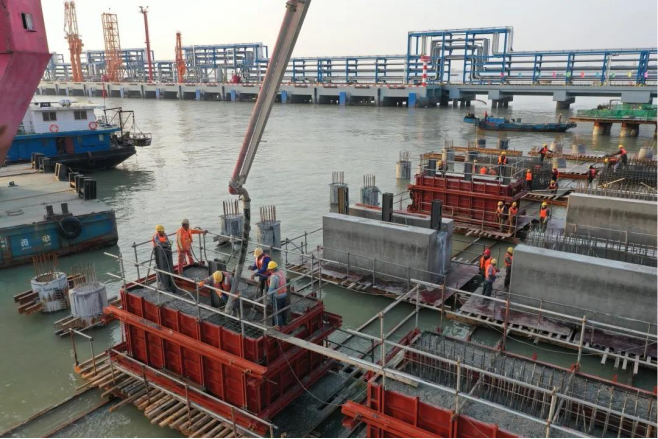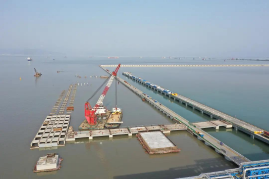 中交集团所属中交三航局承建的徐圩液体散货码头项目是江苏连云港石化产业基地的重点工程,计划新建2个10万吨级液体散货泊位,用以满足港口运输及化工仓储需求。春节前,项目团队基本完成了沉桩施工,顺利进入码头上部结构施工阶段。“构件安装作为上部结构的重要部分,它的效率直接决定了之后的面板安装及面层进度。”王国正介绍。