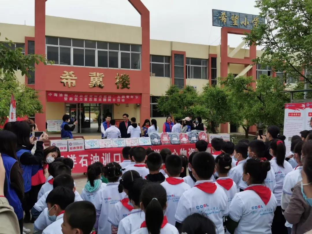 细雨霏霏挡不住海油人和这里孩子们的热情。“五四”青年节来临之际,中海油服的“蔚蓝力量”志愿者与训口希望小学师生共同开展了主题团日活动和“知史爱党 知史爱国”主题班会,为在校的89名学生送上书包、文具等学习用品。鲜艳的红领巾,湛蓝的志愿者制服,错落但动听的合唱,这是一次温馨朴素的聚首,也是中海油服在训口希望小学建立帮扶长效机制以来再普通不过的重逢。23年的时间很长,长到让在这里工作了二十多年的张红艳老师从大姑娘变成了两个孩子的妈妈;23年又很短,短到回忆起多年前带孩子们奔赴北京参加中国海油希望小学夏令营活动的场景还历历在目。