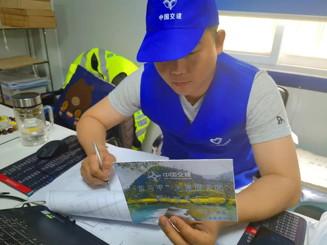 于是,一支由项目青年党员和入党积极分子组成的12人“蓝马甲”志愿服务队成立了,共分两组,利用每个周日下午两个小时的时间,帮助村民做些力所能及的事。冯乐乐还设计制作了帮助联系卡,分发到每户村民手中,上面印有醒目的中交标识和联系方式,以及服务开放时间。