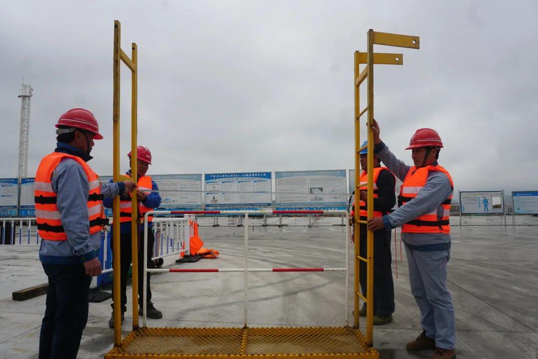 半个月前,项目部开展安全隐患排查,模拟极端状态下桩帽施工时不慎“坠入海中”。极端状态是指桩帽节点施工浇筑混凝土时,安全带无处可系,防护网无法安装的一种特殊状态。虽然发生的概率很低,但项目经理余振刚皱着眉头说道:“这就是安全隐患,必须解决。”