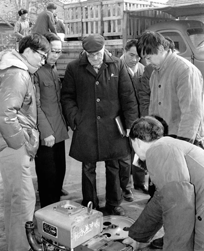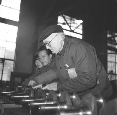 格里希厂长在武汉柴油机厂加工车间检查零部件质量(新华社资料图)