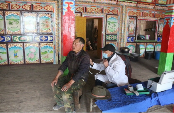 11月29日,登巴村藏民洛桑江措一起床就觉得有些头痛,看着远处连绵的雪山,他稍稍犹豫一下就出了门,来到位于村旁边的中国铁建所属中铁十一局二公司318国道项目部,找到了项目医生杨涛,仔仔细细检查了一遍,打了一针,又吃了些药,感觉好多了。而这,已经是杨医生今天接待的第二位来看病的登巴村藏民了。