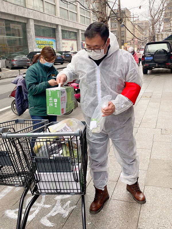 当看到社区居民生活物资紧缺后,邵国华主动请求参加社区志愿服务,每日负责为小区居民采购物资、送货上门。