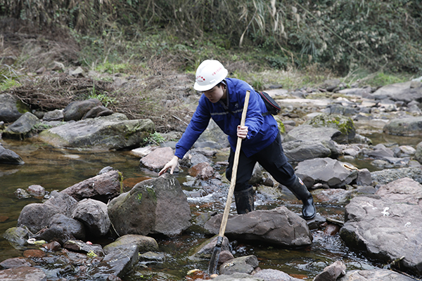 到了目的地,一行三人先趟过山下的一条河,没走几步,群山便将他们“淹没”。山上多是密不透风的茂林野竹,他们先用锋利的劈刀开路。因山势太陡,再加地面潮湿,稍不小心就会滑倒,有时还会被带刺的荆棘扎伤。下山时,为了节省力气,他们会像滑滑梯一样直接滑下去……