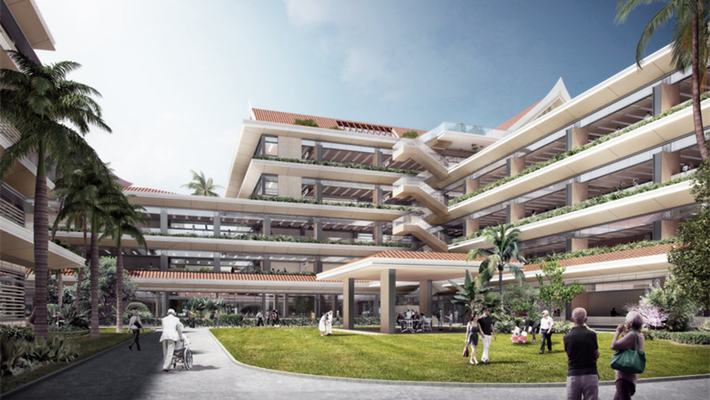 据了解,设计方案将中国现代建筑与老挝当地传统建筑风格有机融合,用现代的建筑手法体现老挝当地建筑特色;充分考虑了老挝当地气候特点,以开敞的医疗主街将门诊综合楼、医技楼、病房楼等医疗功能体块予以串连,功能体块中穿插符合当地的绿化景观,打造宜人环境;从医院运行出发,配备了先进完备的医疗设备;作为现有医院的改建项目,通过分阶段实施措施,保证了玛霍索医院在建设期间不停诊运营。