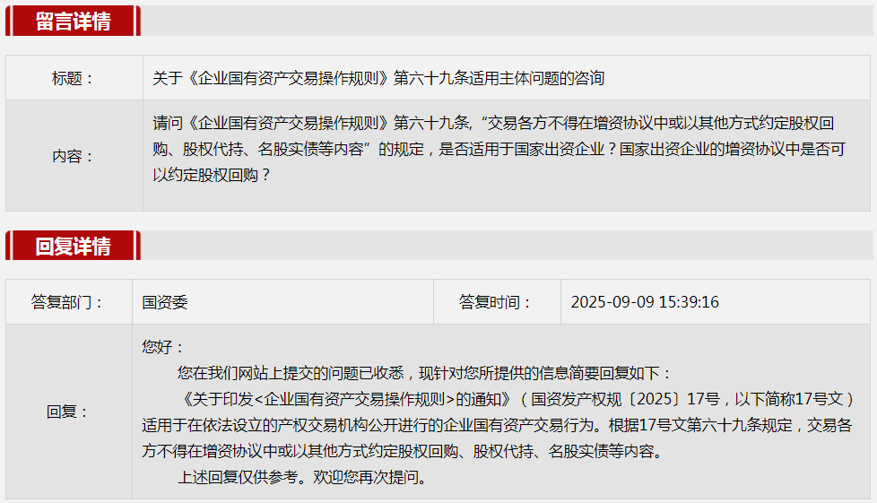 3.关于《企业国有资产交易操作规则》发布前的回购条款是否继续有效问题的咨询