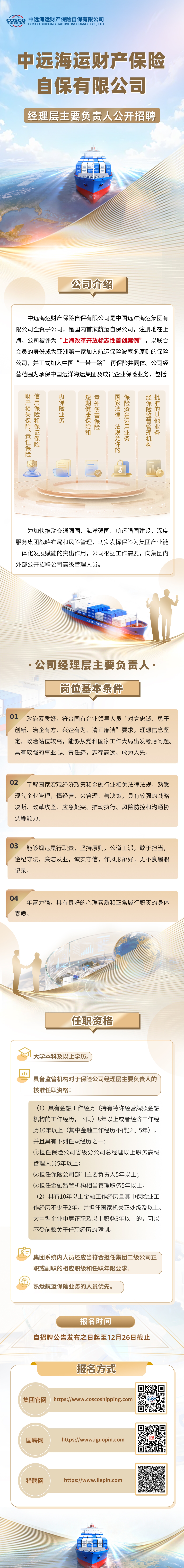 中远海运财产保险自保有限公司高级管理人员公开招聘公告