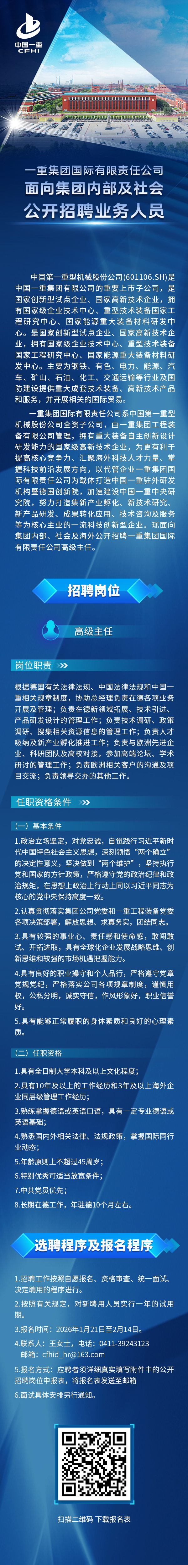 一重集团国际有限责任公司面向集团内部及社会公开招聘业务人员