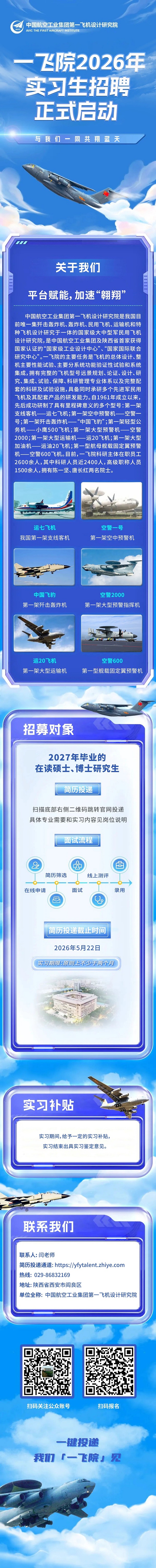 中国航空工业集团第一飞机设计研究院2026年实习生招聘正式启动
