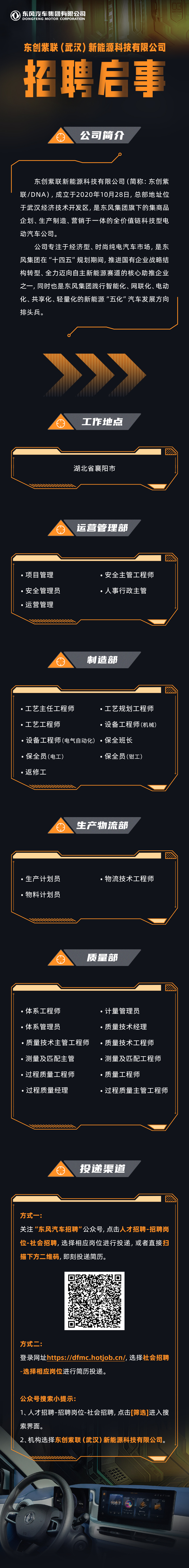 东风公司所属东创紫联新能源科技有限公司招聘公告