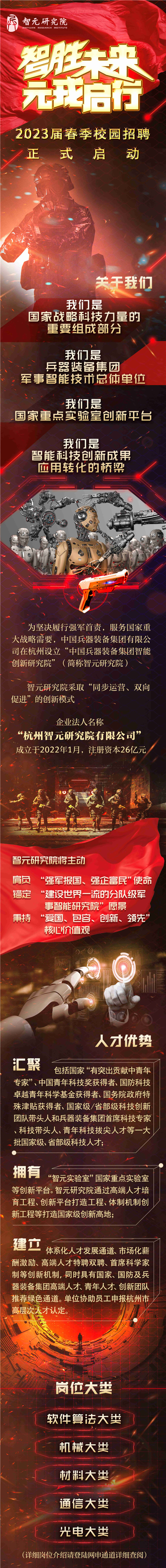 兵器装备集团智元研究院2023届春季校园招聘正式启动