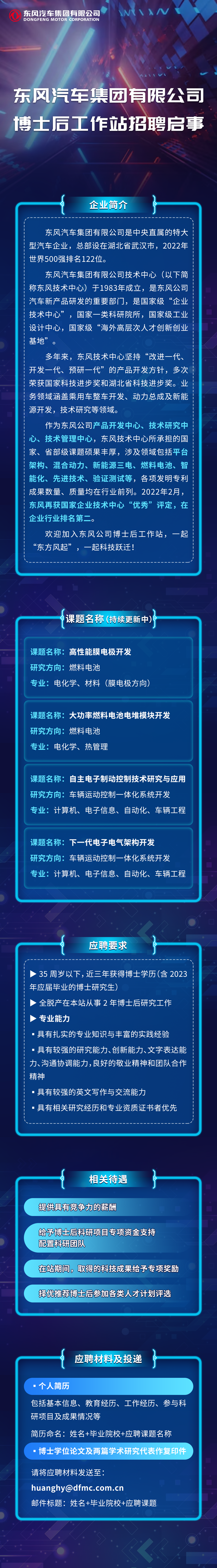 东风汽车集团有限公司博士后工作站招聘启事