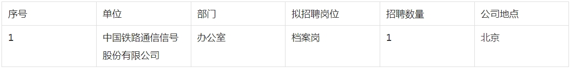 根据工作需要,现在全社会范围内公开招聘中国铁路通信信号股份有限公司总部相关工作人员,具体情况如下: