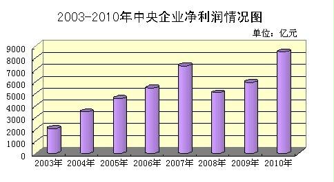 三、经济效益情况。2010年度中央企业实现净利润8522.7亿元,比上年增长42.8%。在全部中央企业中,2010年度实现净利润比上年增长的企业有99家。2010年度中央企业平均总资产报酬率为6.1%,比上年上升0.8个百分点,总资产报酬率比上年提高的企业有78家;中央企业平均净资产收益率(含少数股东损益/权益,下同)为9.5%,比上年提高1.9个百分点,净资产收益率比上年提高的企业有79家;中央企业平均成本费用利润率为7.2%,比上年提高0.4个百分点,成本费用利润率比上年提高的企业有63家。