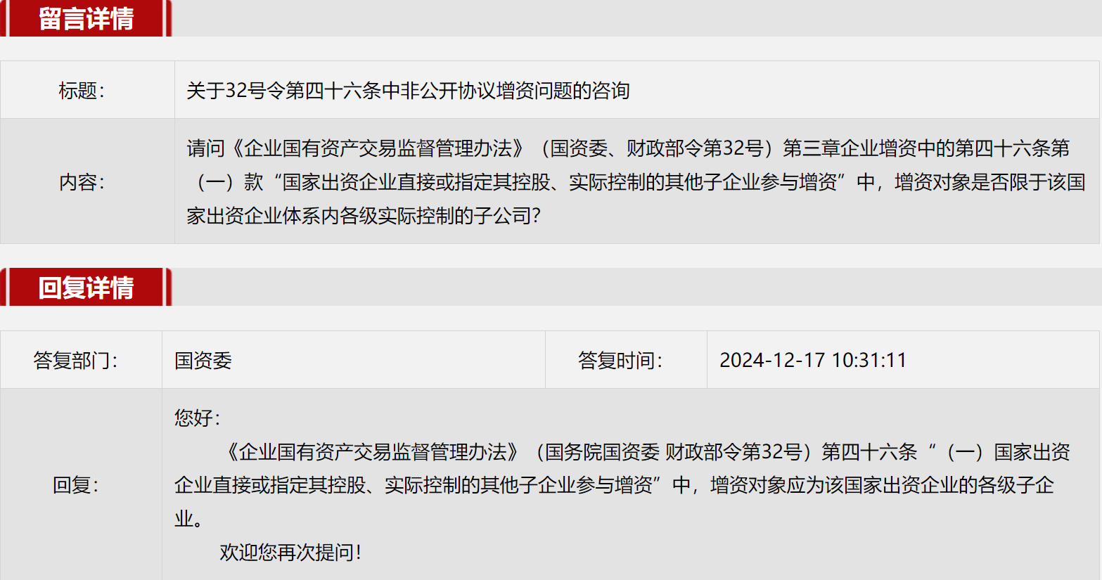 3.关于32号令第四十六条中非公开协议增资问题的咨询