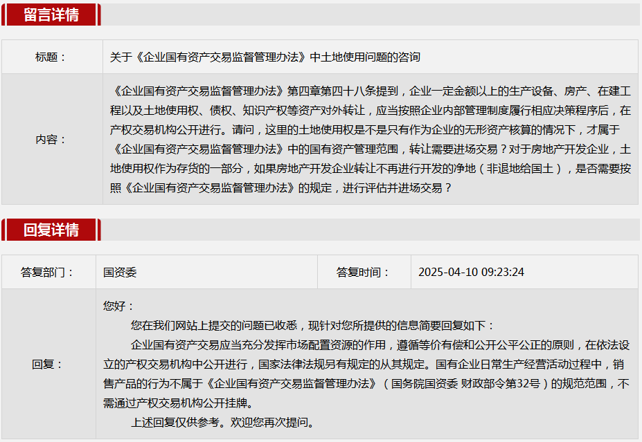 1.关于《企业国有资产交易监督管理办法》中土地使用问题的咨询