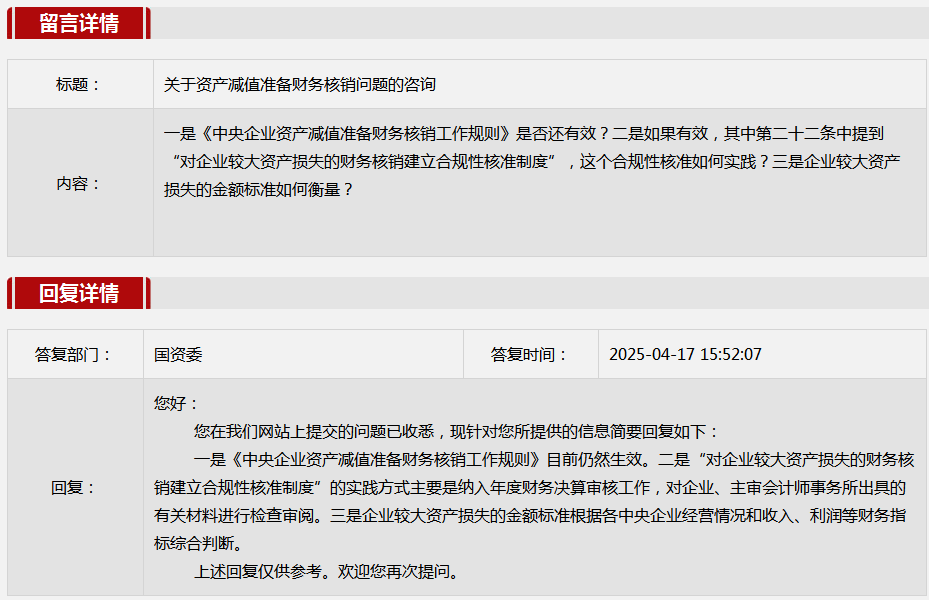 3.关于资产减值准备财务核销问题的咨询