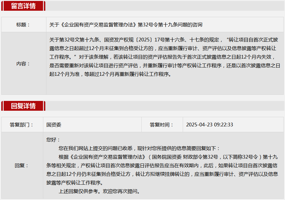 2.关于《企业国有资产交易监督管理办法》第32号令问题的咨询