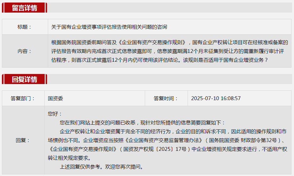3.关于国有企业增资事项评估报告使用相关问题的咨询