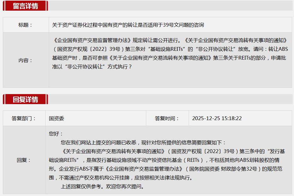3.关于资产证券化过程中国有资产的转让是否适用于39号文问题的咨询