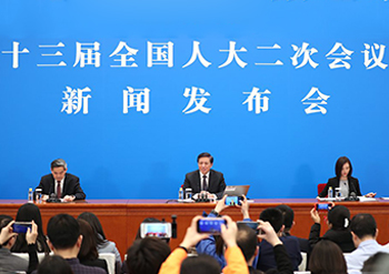 十三届全国人大二次会议举行预备会议,选举大会主席团和秘书长,表决会议议程草案。预备会议后,大会主席团举行第一次会议。上午11时15分,十三届全国人大二次会议举行新闻发布会,由大会发言人就大会议程和人大工作相关的问题回答中外记者提问。 全国政协十三届二次会议全天进行小组讨论,审议全国政协常委会工作报告和提案工作情况报告。 【详细】