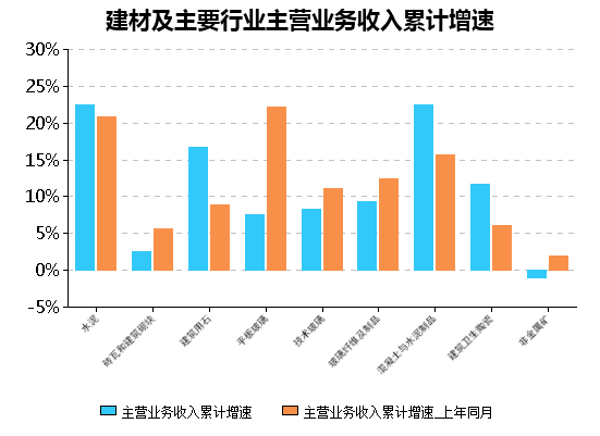 图 12:建材及主要行业主营业务收入累计增速