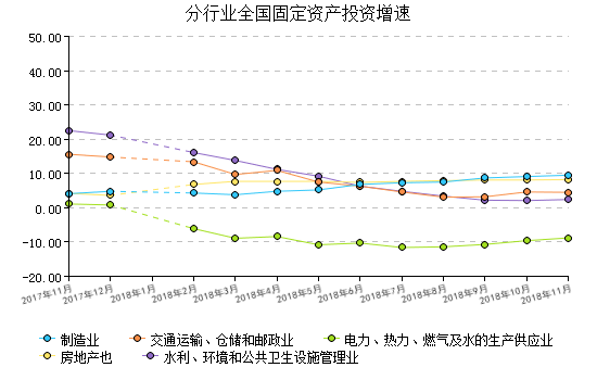 分行业来看:房地产业累计投资增速增长8个百分点;水利、环境和公共设施投资增速增长2个百分点;交通运输、仓储和邮政业投资增速增长5个百分点;制造业投资增速增长10个百分点。
