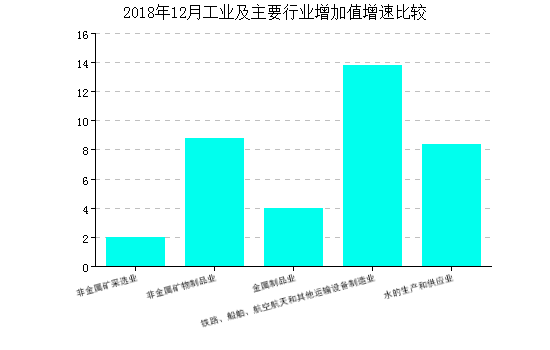2018年12月规模以上工业增加值同比增长5.70%,累计增长增长6.20%。 跟其他工业行业相比,建材行业增加值增速低于设备制造、电器机械和器材制造、电力、热力生产及供应等行业,高于化学原料和化学品制造、黑色金属冶炼和压延、有所金属冶炼和压延等行业。