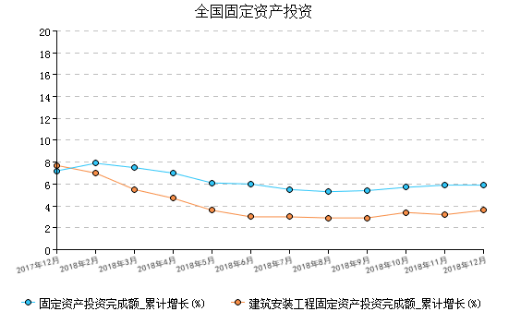 2018年12月全国固定资产投资累计增速增长5.9%,其中建筑安装工程投资累计增速增长3.6%。
