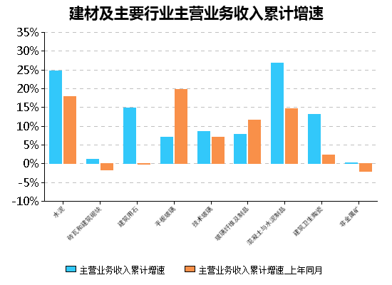 图 8:建材及主要行业主营业务收入累计增速