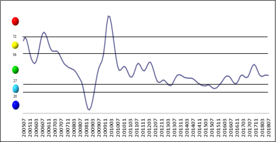 表1 2017年7月至2018年7月中色铜产业月度景气指数