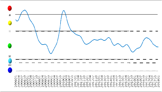 表1 2017年1月至2018年1月中色铅锌产业月度景气指数