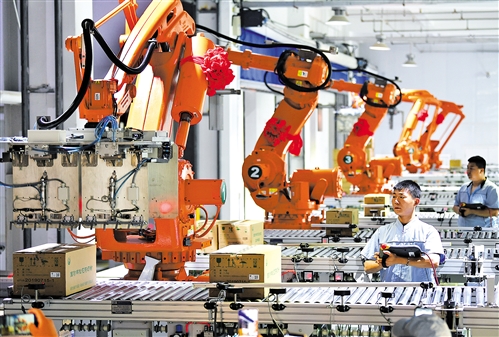 7月15日,中国节能环保集团新时代健康产业(集团)有限公司自动化立体库机械正在作业。